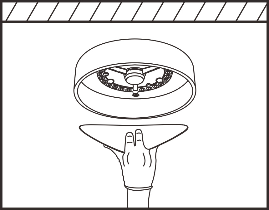 ( 3 ) 微微弯曲扩散板,以倾斜方向插入灯体后松手,让扩散板自然下落即可,完成安装。
